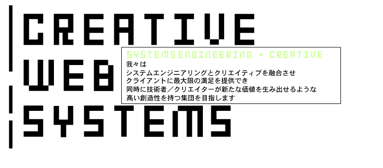 我々は、システムエンジニアリングの立場から、Webサイトの新しい可能性を探っていきます。そのためのアプローチとして「Creative Web Systems」というキャッチコピーを掲げています。技術者が高い創造性を発揮する時、新たな価値を持つWebサイトが生み出されると確信しています。